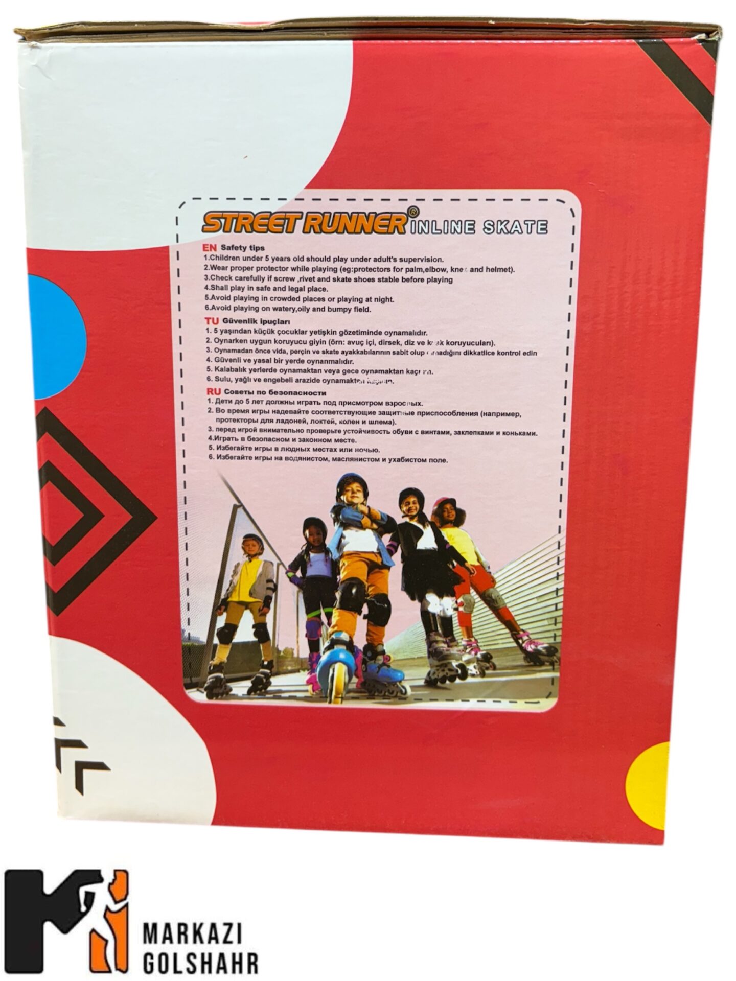 این محصول شامل کفش اسکیت است. توصیه می‌شود برای ایمنی کامل، کلاه و لوازم ایمنی استاندارد را به صورت جداگانه تهیه فرمایید.