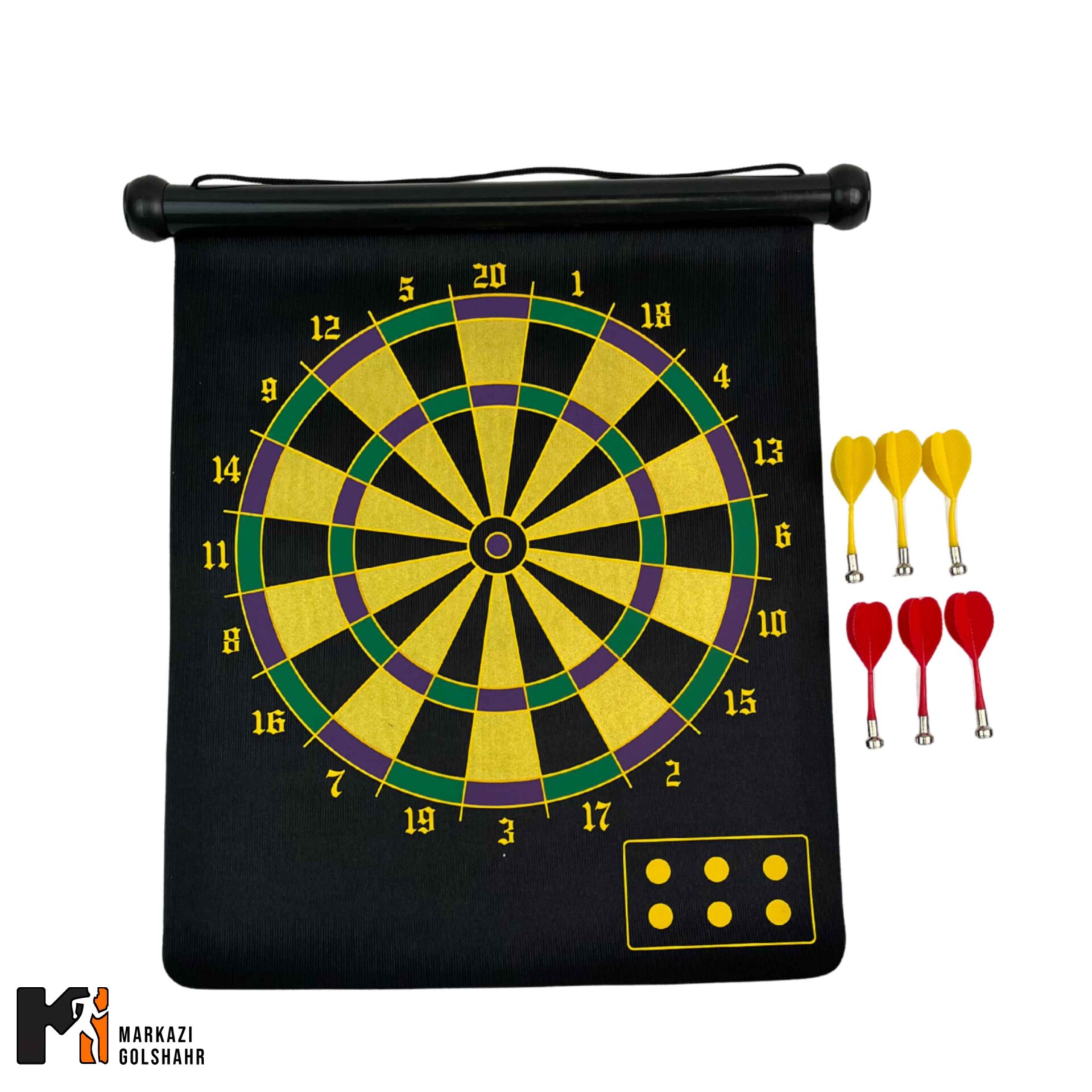 شامل سیبل دو طرفه با چاپ با کیفیت HD؛ تیرها از جنس مگنت فوق قوی (فاقد سوزن)؛ سیبل با قابلیت تاشو و لوله شدن آسان؛ دارای ۶ عدد تیر متعادل (۳ قرمز و ۳ زرد).