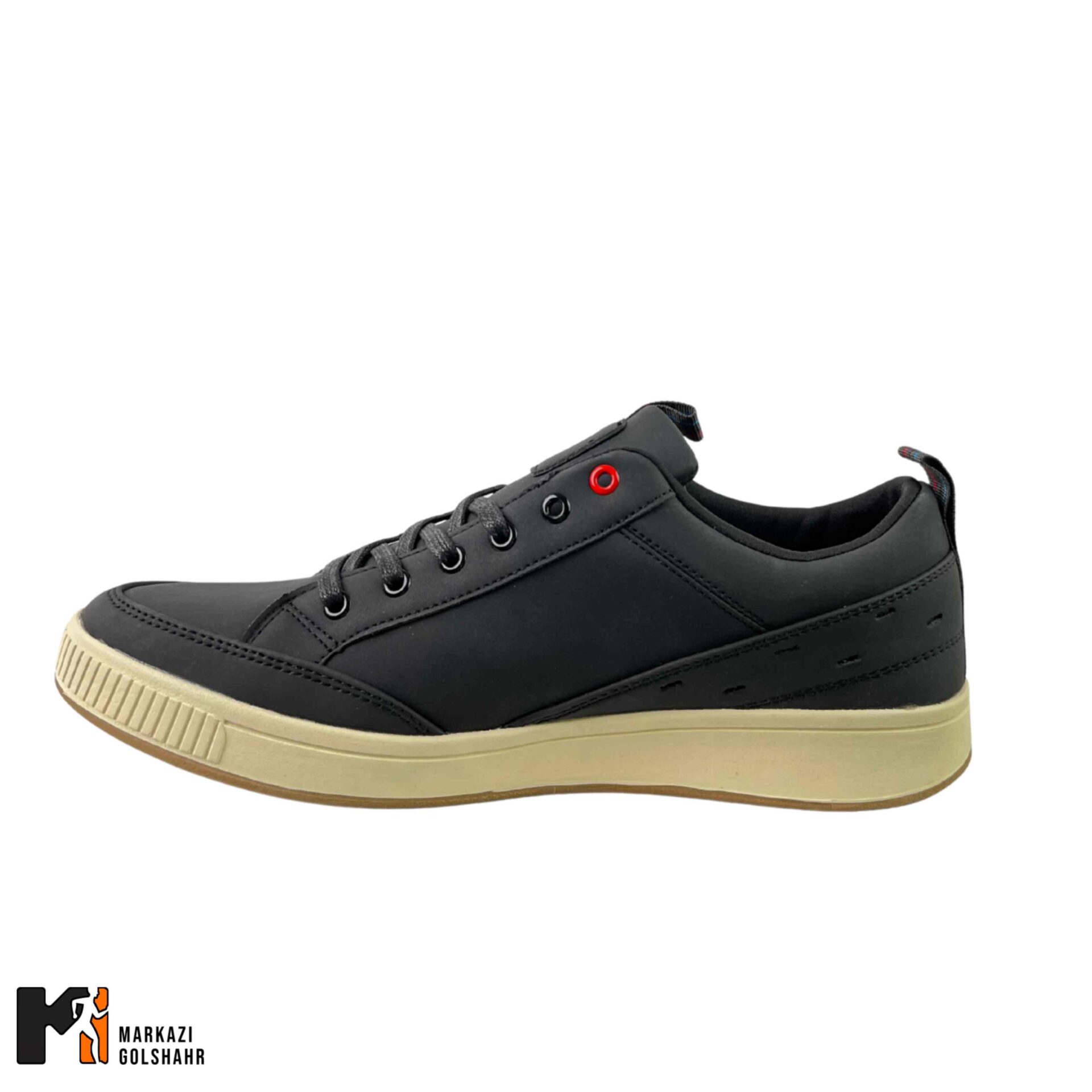 رویه ترکیبی از چرم مصنوعی و پارچه مقاوم؛ دارای کفی داخلی نرم و طبی (Comfort Insole) برای پشتیبانی قوس پا؛ زیره لاستیکی مسطح با ساختار روزانه.