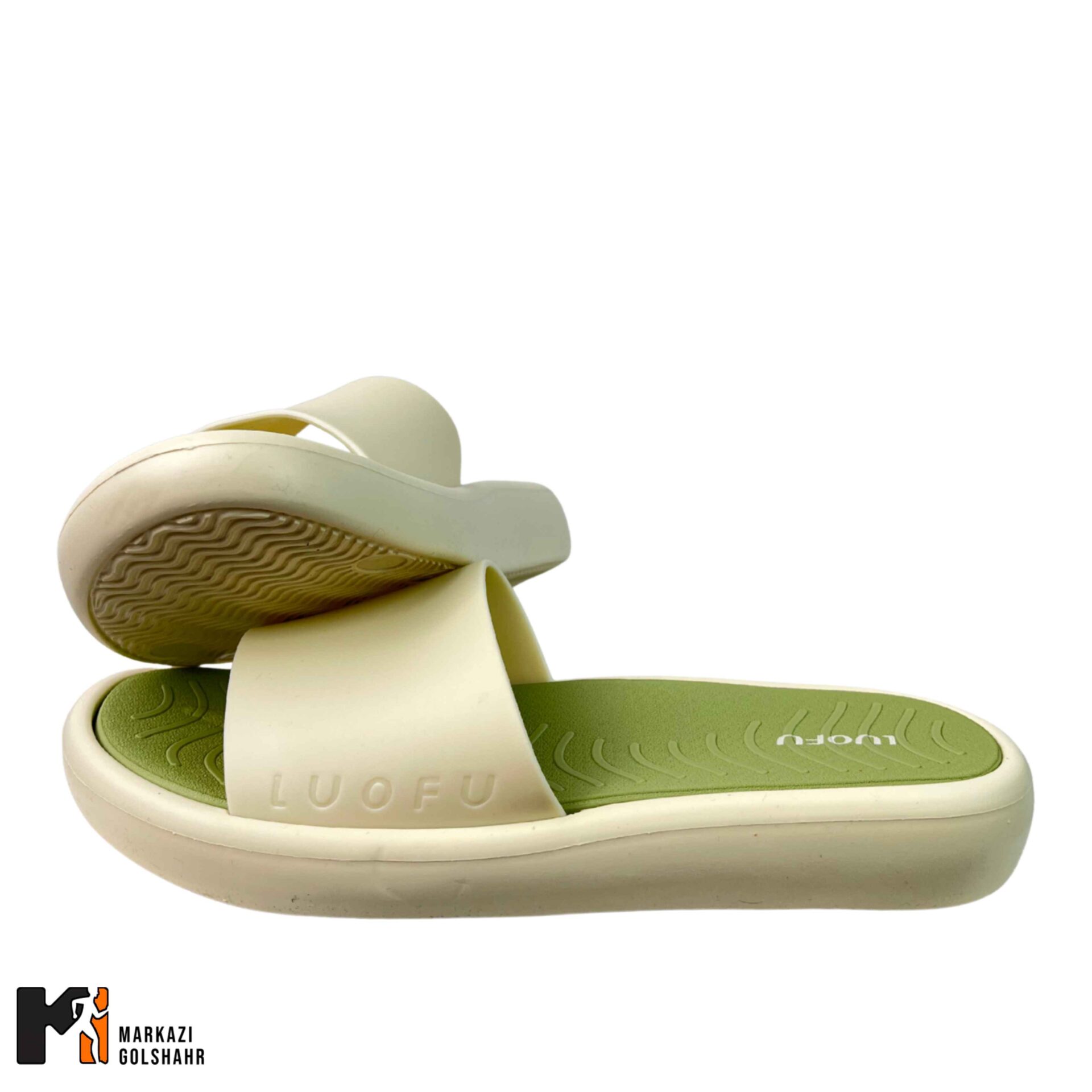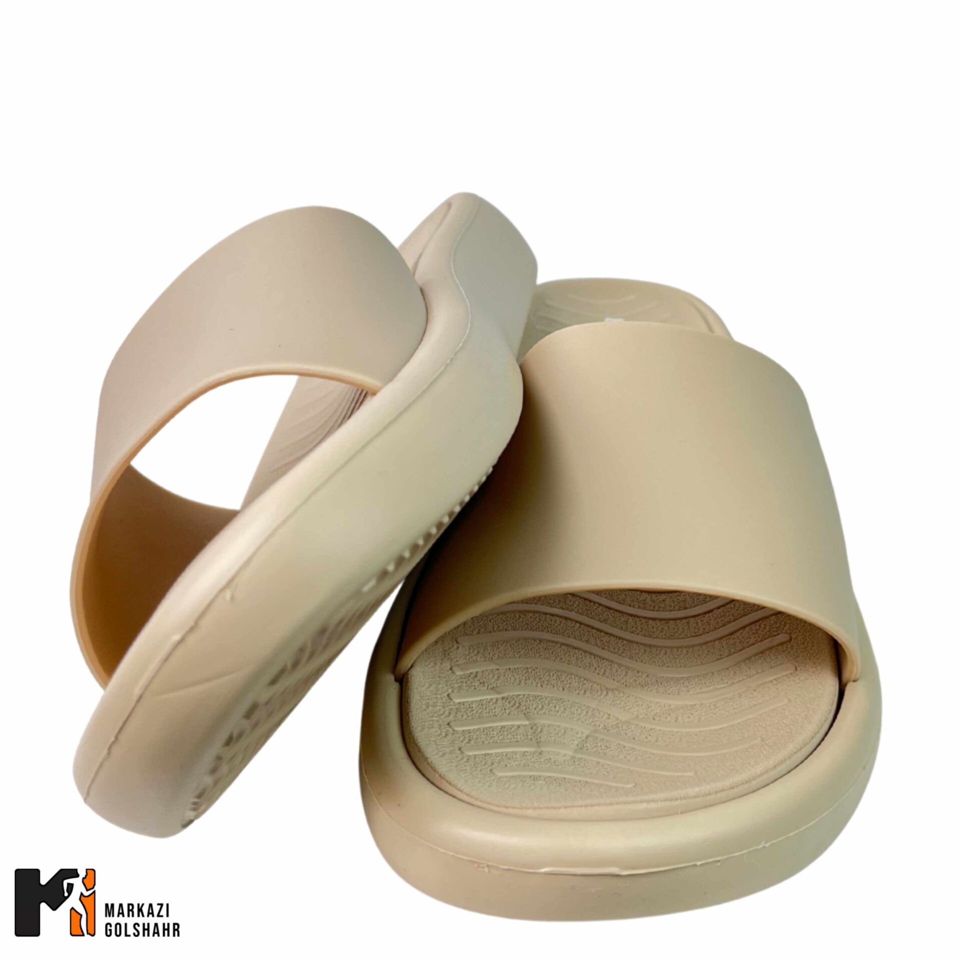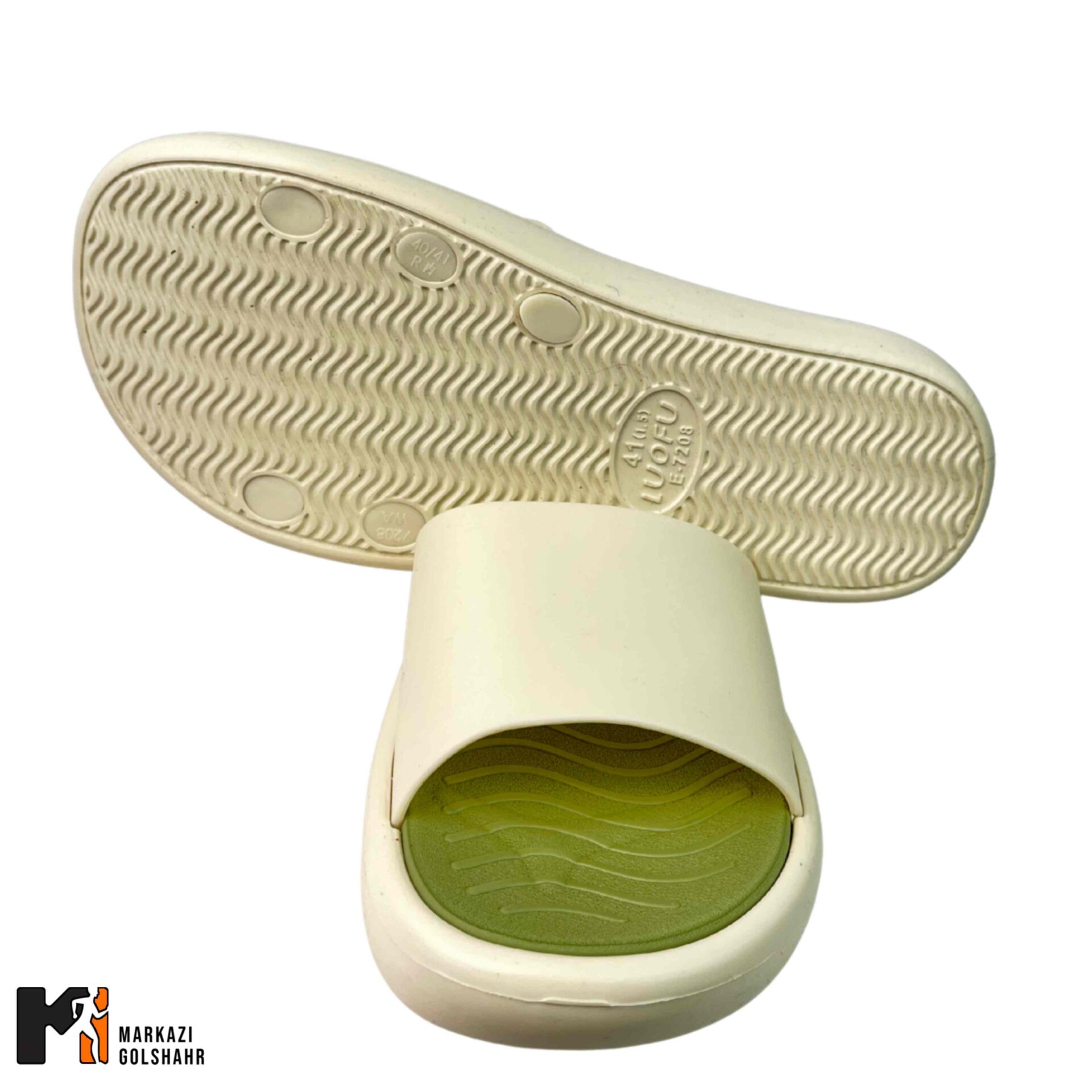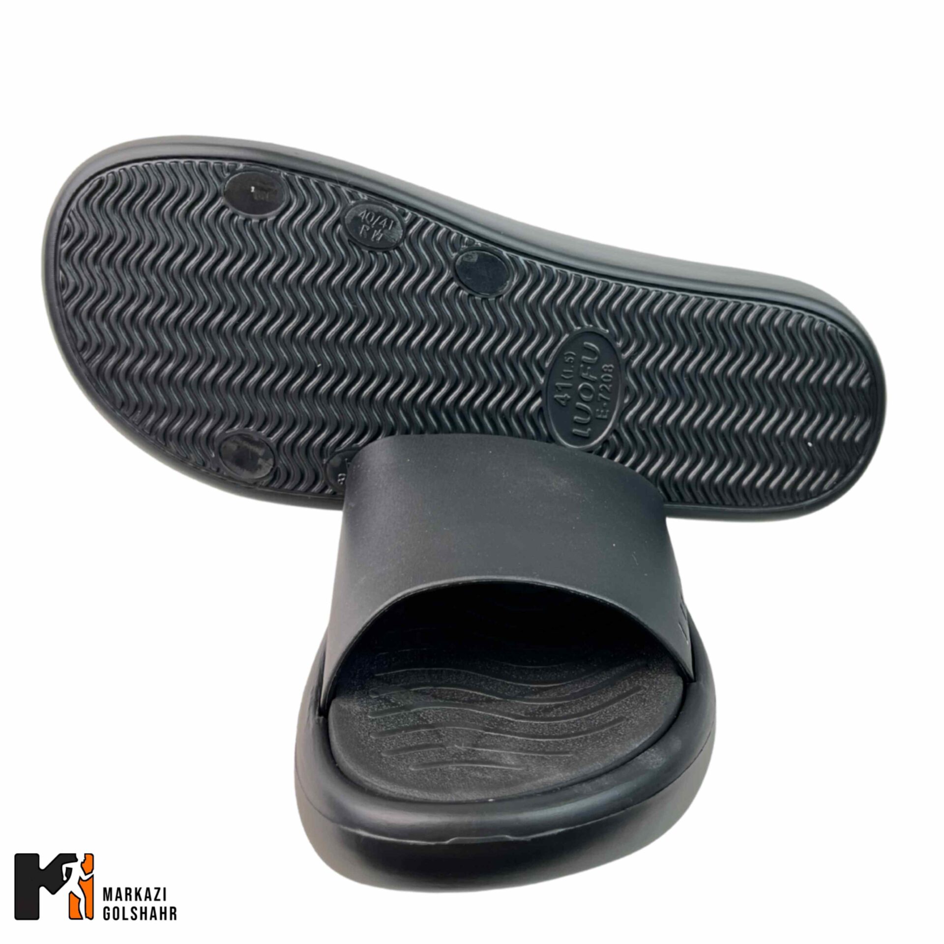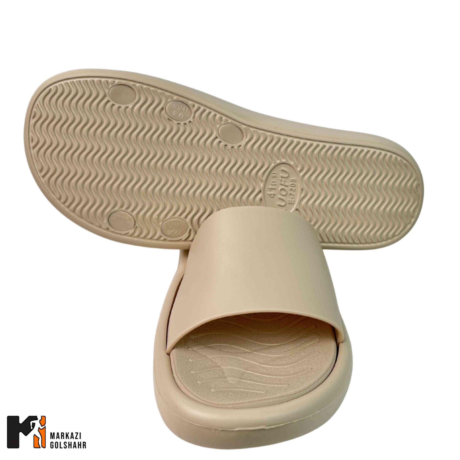 کفی صندل دارای الگوی هندسی خاص و شیارهایی است که آب را به سمت بیرون هدایت کرده و چسبندگی را حتی روی سطوح صابونی حفظ میکند.