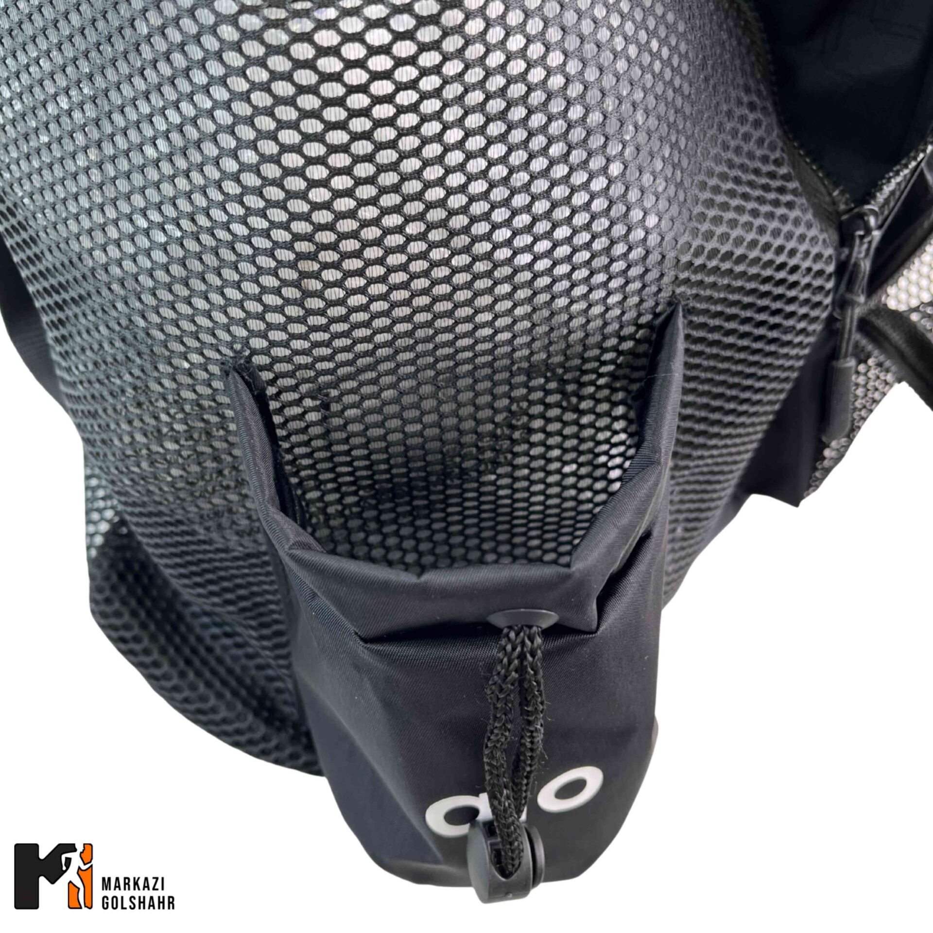 محفظه کفش یا همان جیب بزرگ پایینی، به داخل فضای اصلی کوله باز میشود، اما جنس تور و پلاستیک، تهویه را تضمین میکند تا رطوبت در یک نقطه متمرکز نشود.