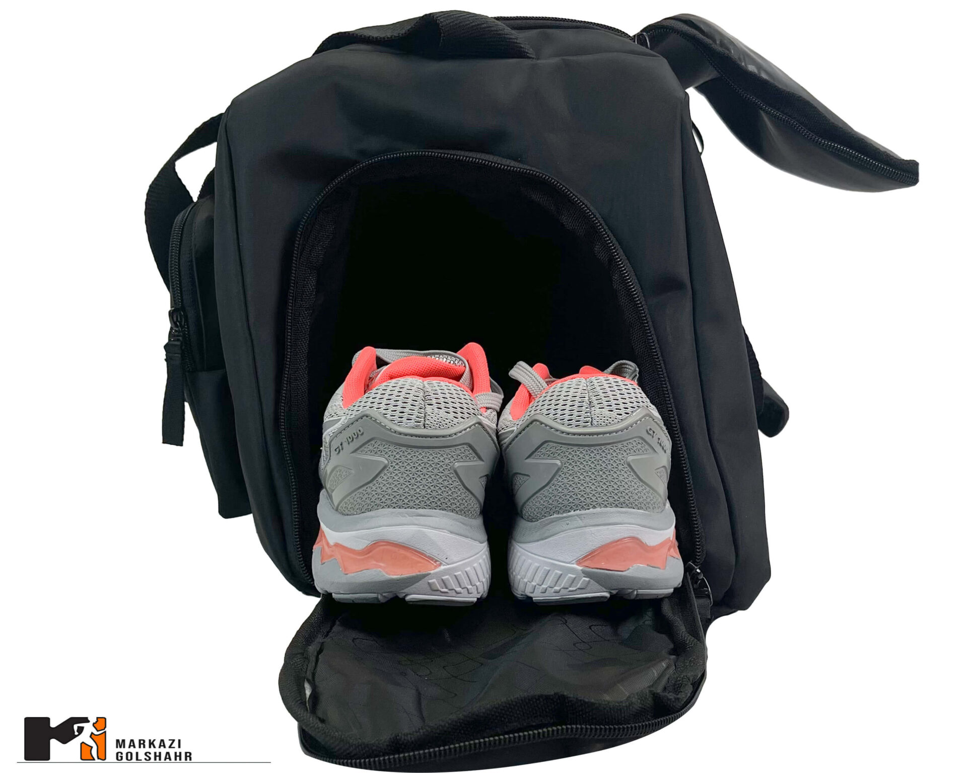 • محفظه اختصاصی کفش: مهم‌ترین و کاربردی‌ترین مزیت این کیف، وجود یک جیب بزرگ و ایزوله در قسمت کناری برای قرار دادن کفش است. این محفظه به شما اجازه می‌دهد تا کفش‌های ورزشی کثیف یا خیس خود را بدون نگرانی از آلوده شدن لباس‌های تمیز، حوله و سایر وسایلتان، به صورت کاملاً مجزا حمل کنید. این ویژگی بهداشت و پاکیزگی وسایل شما را تضمین کرده و یک مشکل همیشگی ورزشکاران را به بهترین شکل حل می‌کند.