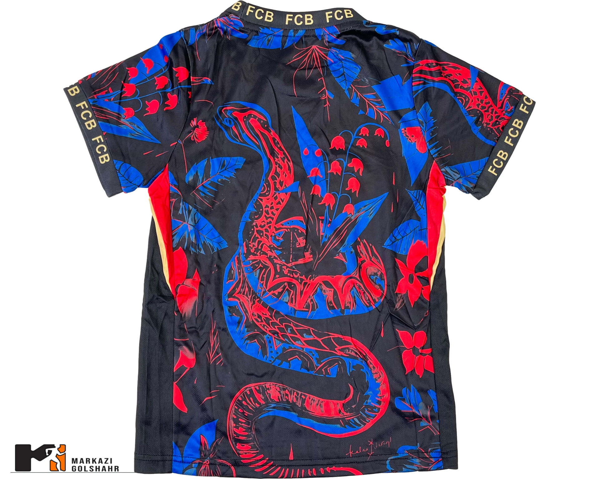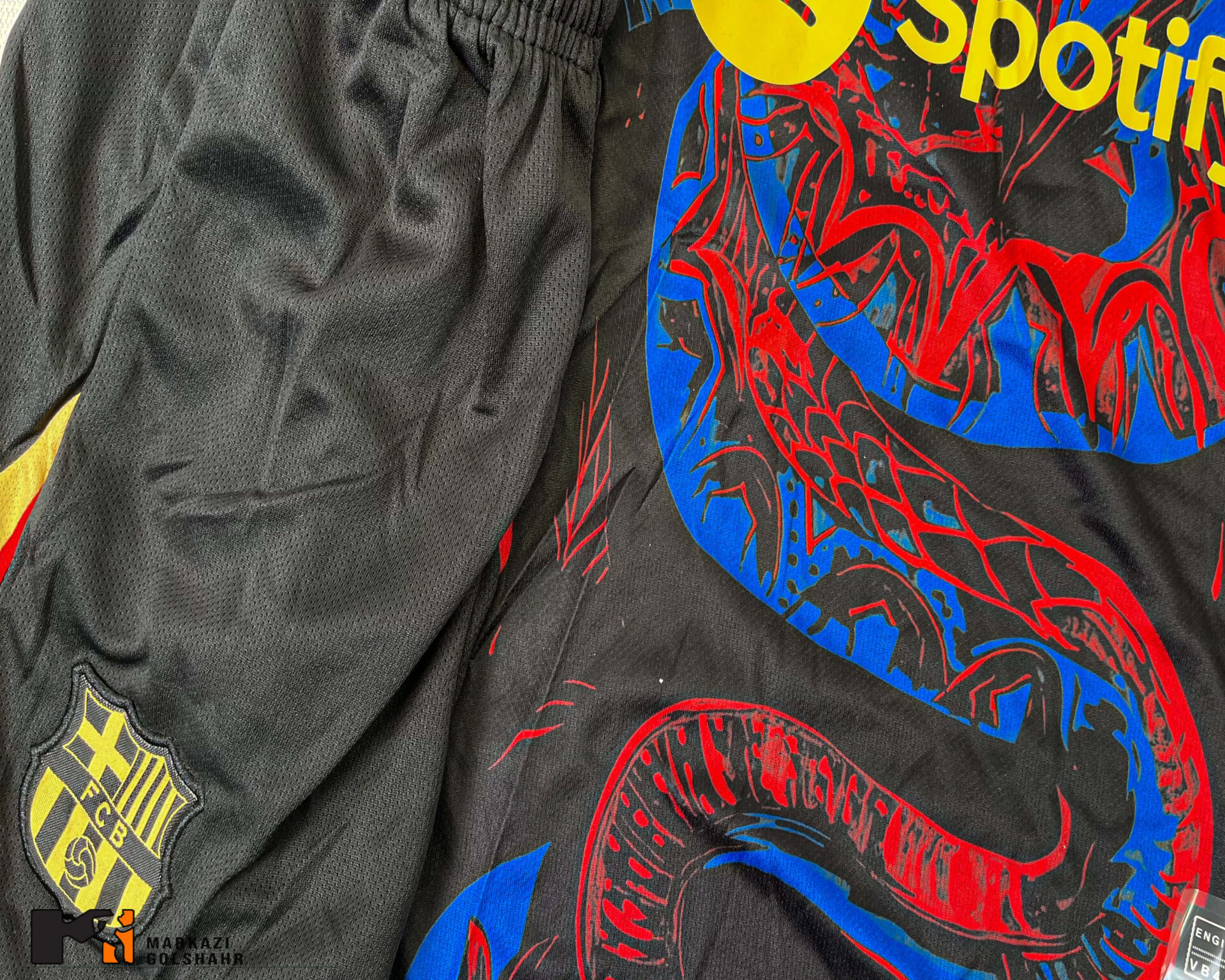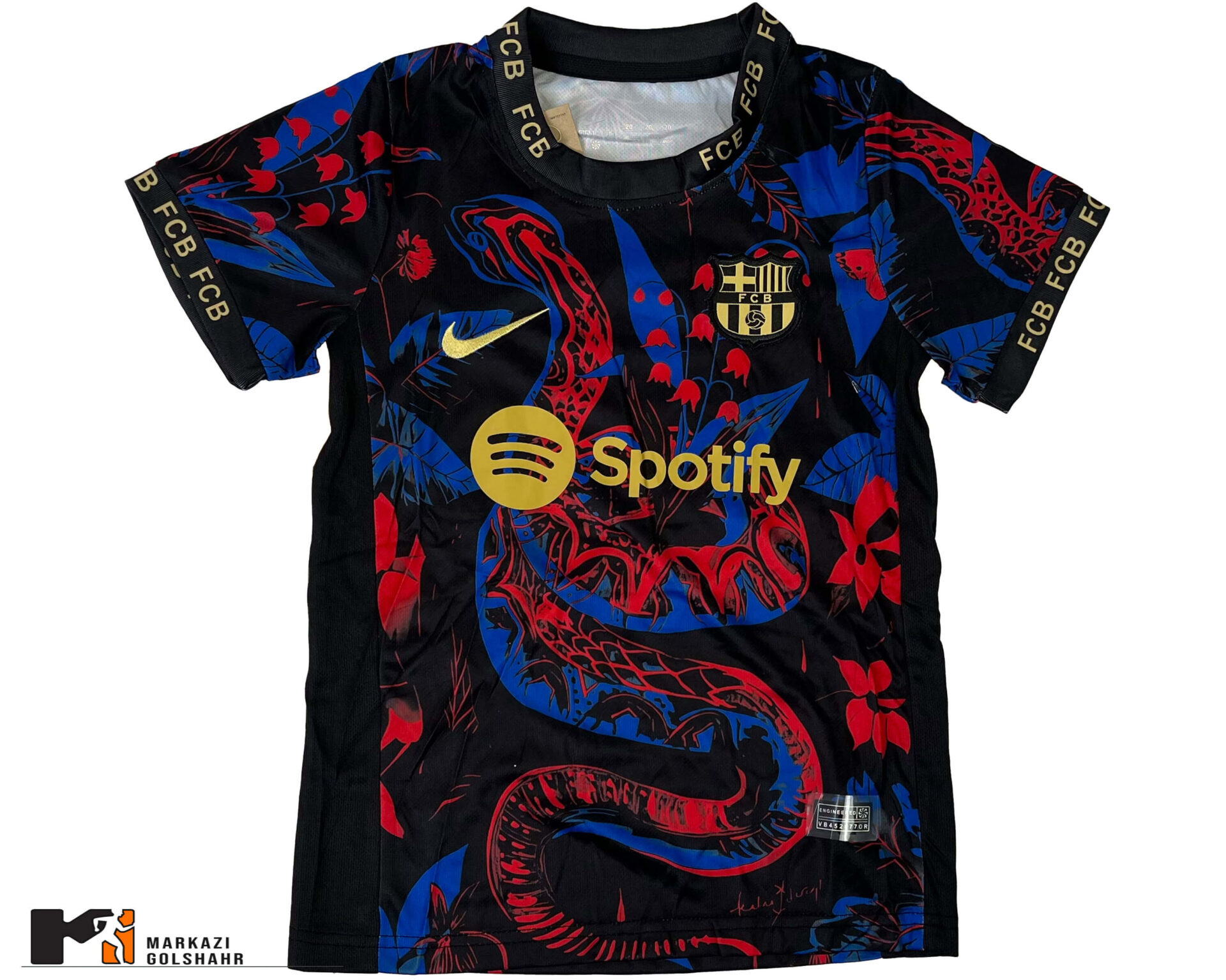 کیت فوتبالی بچه گانه بارسلونا طرح مار با استفاده از پارچه فلامنت تنفسی تولید شده است؛ پارچه‌ای سبک، بادوام و لطیف که در دویدن‌های طولانی باعث تعریق زیاد نمی‌شود. در طراحی این لباس از نقاط تنفسی هوشمند استفاده شده که اجازه می‌دهد هوای تازه بین لباس و بدن گردش کند، بنابراین پوست کودک همیشه خشک و خنک می‌ماند. لباس بدون شماره طراحی شده تا بتوانید نام یا شماره دلخواه را چاپ کنید؛ هدیه‌ای خاص و شخصی‌سازی‌شده برای هواداران کوچک بارسلونا. دوخت مقاوم و یکنواخت در بخش‌های کلیدی لباس باعث شده در بازی‌های پرتحرک، درزها باز نشوند. از نظر ظاهر نیز، طرح مار روی لباس الهام گرفته از فلسفه قدرت و تمرکز است؛ درست همان چیزی که باشگاه بارسلونا در زمین نشان می‌دهد.