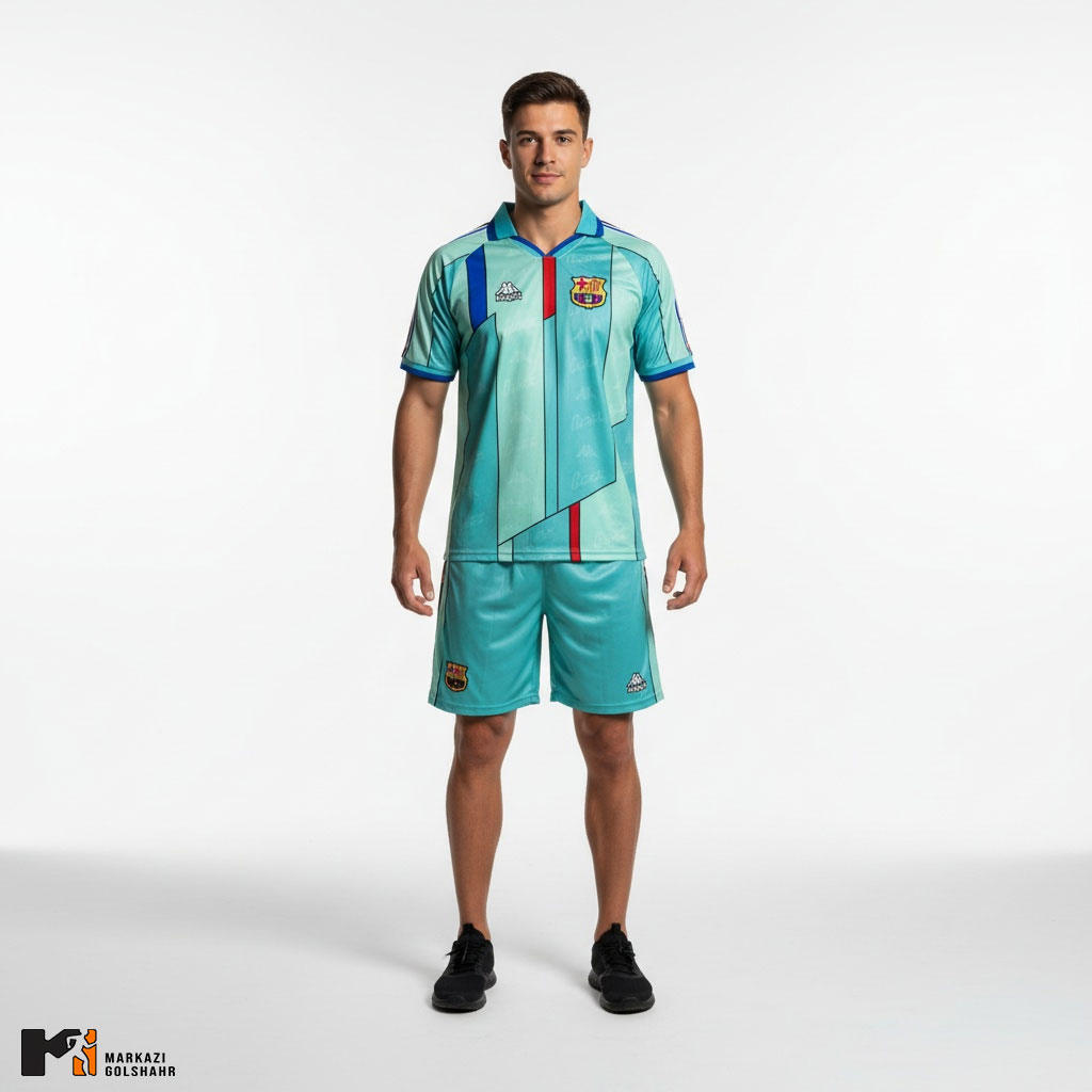 کیت شامل تیشرت و شورت هماهنگ با طراحی کلاسیک باشگاه بارسلونا است.